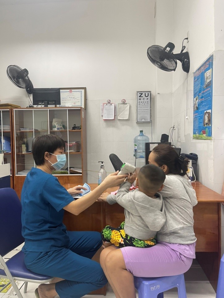 Bác sỹ Lê Thị Quyên – Trưởng Trạm Y tế Phường 9 thăm khám và chỉ định tiêm chủng