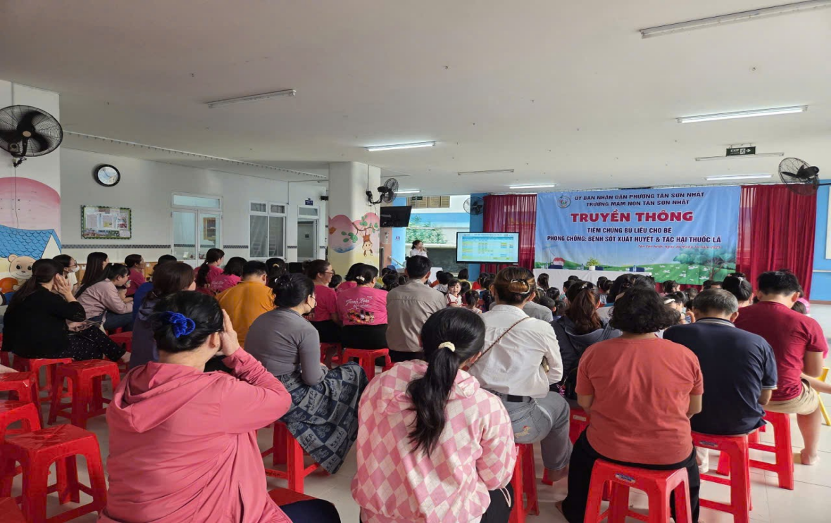 Sáng ngày 05/11/2025, Trạm Y tế phường Tân Sơn Nhất phối hợp với Trường mầm non Tân Sơn Nhất tổ chức truyền thông tiêm chủng bù liều, phòng chống dịch bệnh sốt xuất huyết, phòng chống tác hại thuốc lá, với sự tham dự của buổi truyền thông báo cáo viên là bác sĩ Lê Hoàng Dân - Trạm Y tế phường và 50 người là đại diện Ban giám hiệu, giáo viên, phụ huynh học sinh của trường.