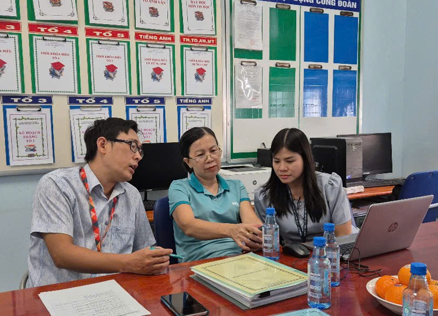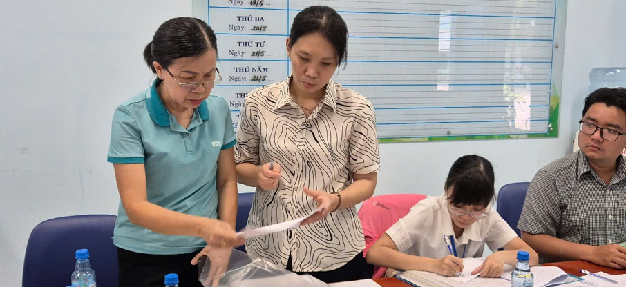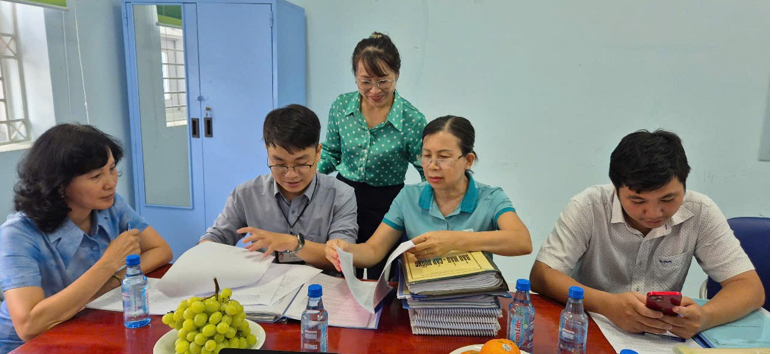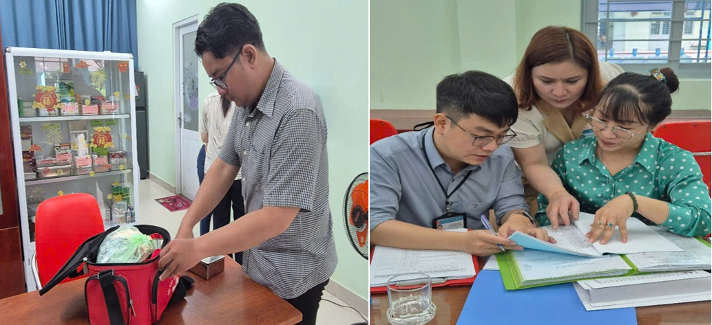 Một số hình ảnh đoàn giám sát HCDC kiểm tra hồ sơ YTTH, tủ thuốc và túi sơ cấp cứu tại Trường Tiểu học Lê Văn Sĩ và THCS Ngô Sĩ Liên