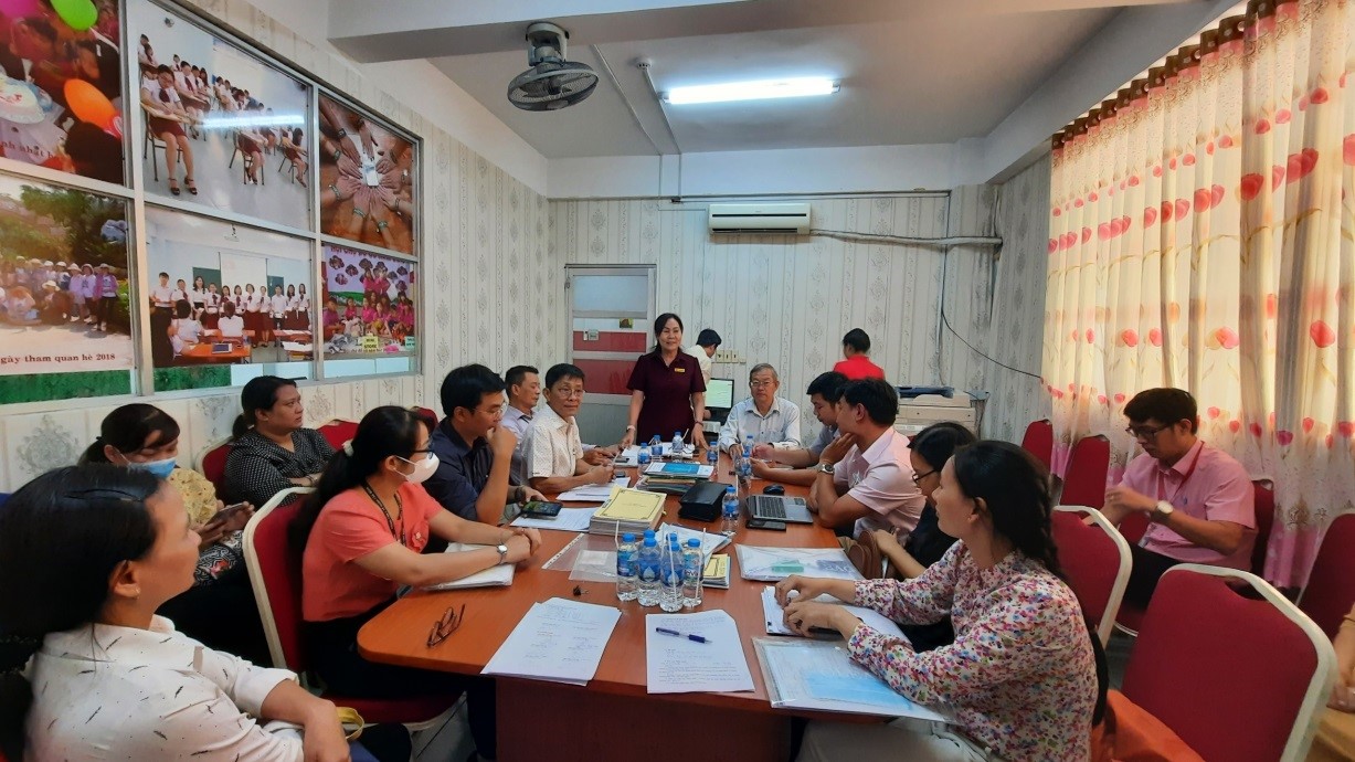 Đoàn giám sát HCDC và Đoàn kiểm tra YTTH quận Tân Bình giám sát hoạt động y tế tại Trường Tiểu học Lương Thế Vinh, Phường 14