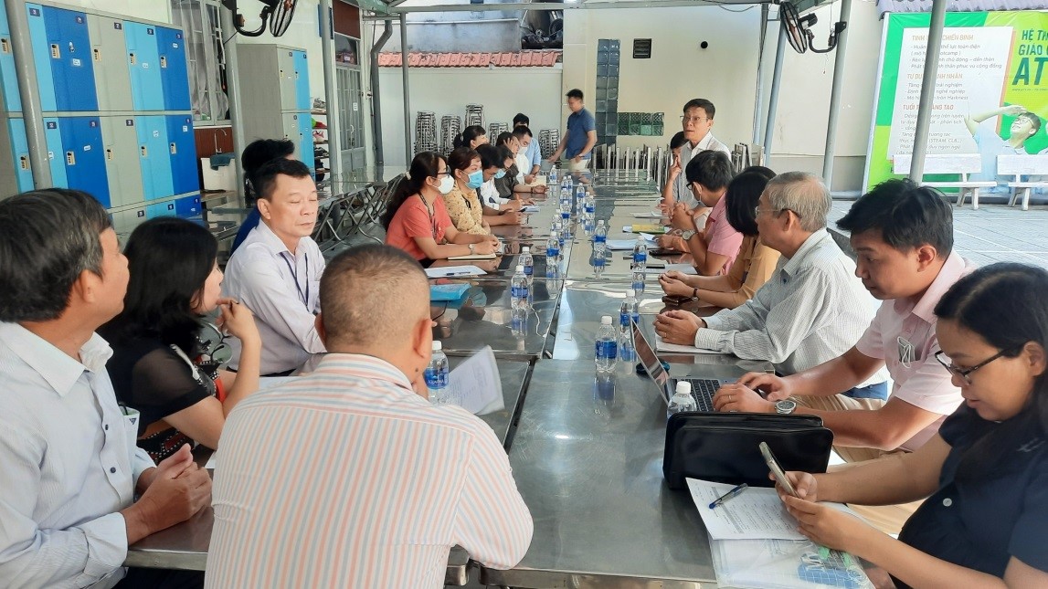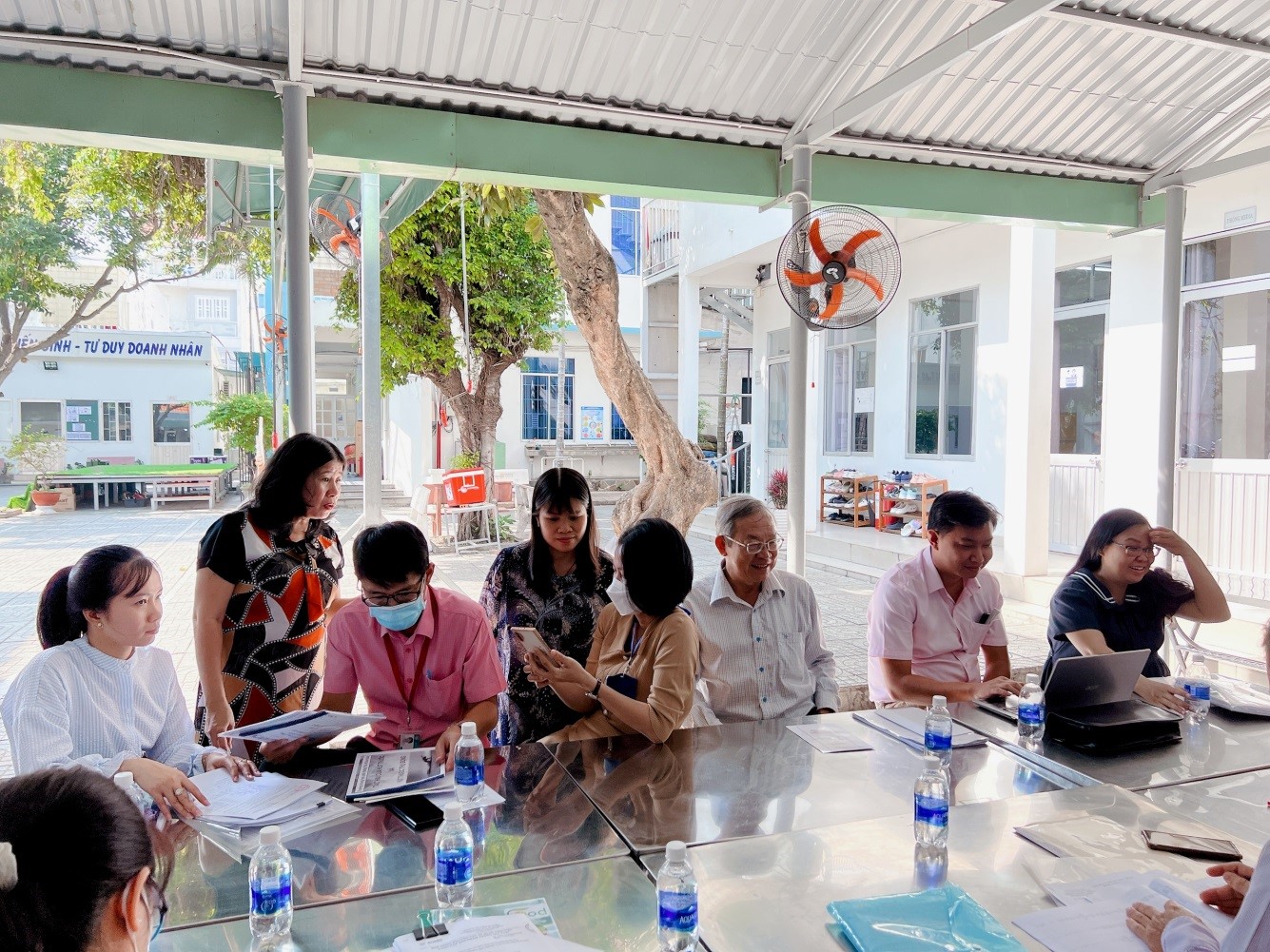 Về phía Đoàn kiểm tra YTTH quận đại diện có BSCKII. Nguyễn Hoàng – Trưởng Khoa YTCC&DD cũng là Trưởng Đoàn kiểm tra YTTH phụ trách chuyên môn, Bs. Nguyễn Hữu Nghị – Chuyên viên Phòng GD&ĐT – Phó Đoàn kiểm tra YTTH quận, ông Phạm Văn Tuyến – Chuyên viên Phòng Y tế quận và các cán bộ Trung tâm y tế, Phòng GD&ĐT có liên quan các chương trình YTTH cùng tham dự.