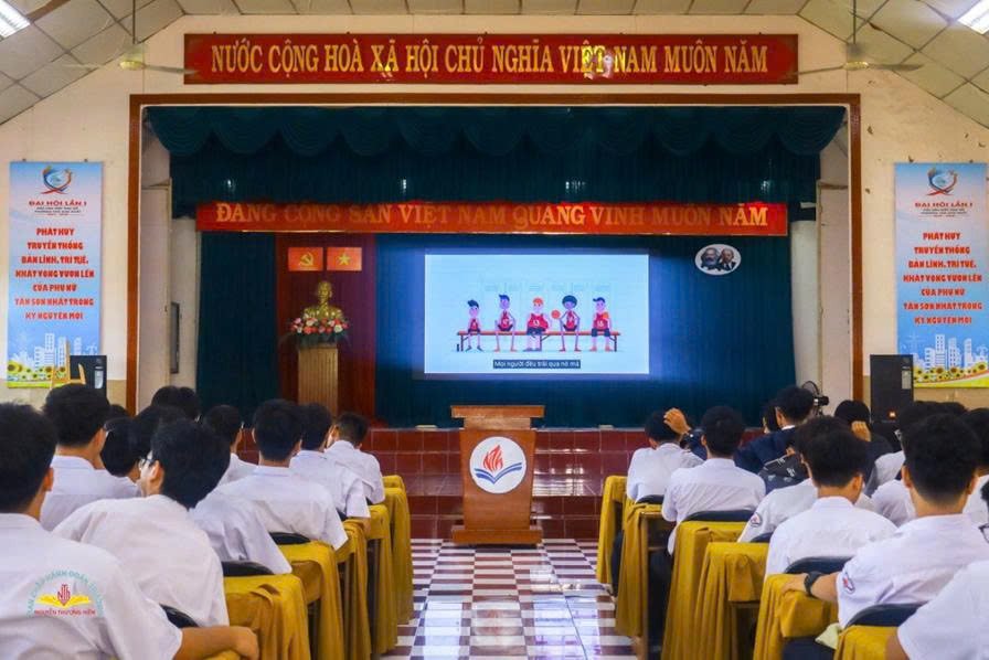 Học sinh Trường THPT Nguyễn Thượng Hiền tham gia thảo luận tại buổi truyền thông
