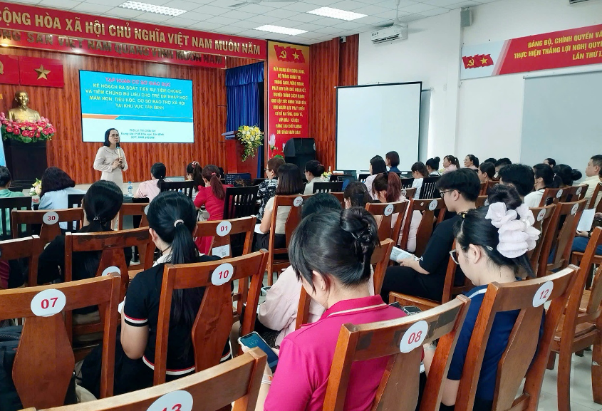 Từ ngày 8/10/2025, Trung tâm Y tế khu vực Tân Bình đã phối hợp phòng Văn hóa - Xã hội tại 6 phường trên địa bàn Khu vực Tân Bình tổ chức tập huấn cho đại diện Ban Giám hiệu, nhân sự y tế trường học của các cơ sở giáo dục mầm non, tiểu học (chỉ áp dụng khối lớp 1) nhằm triển khai thành công việc kiểm tra tiền sử tiêm chủng và tổ chức tiêm chủng bù liều cho trẻ đạt hiệu quả và an toàn cho trẻ khi nhập học, chủ động phòng, chống dịch bệnh trước khi dịch xảy ra, bảo vệ sức khỏe trẻ em.