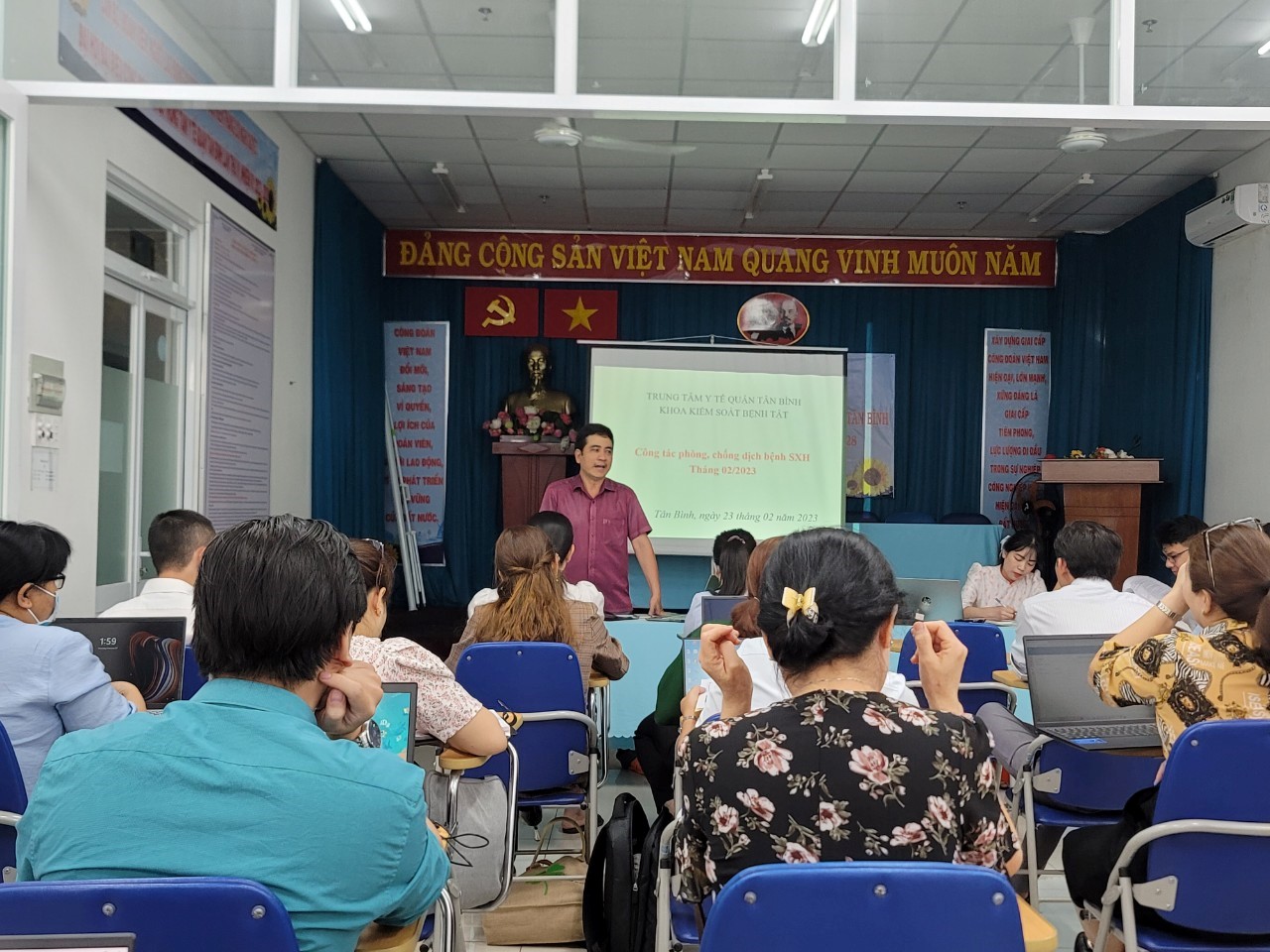 Ngày 23/02/2023, tại hội trường lầu 7, để thực hiện kế hoạch trên, Trung tâm Y tế đã triển khai tập huấn nội dung trong kế hoạch cho 35 cán bộ viên chức là lãnh đạo các Trạm y tế phường, cán bộ phụ trách công tác phòng chống dịch phường và đại diện phòng Kế hoạch nghiệp vụ, phòng Truyền thông Giáo dục sức khỏe, khoa Y tế công cộng – Dinh dưỡng.