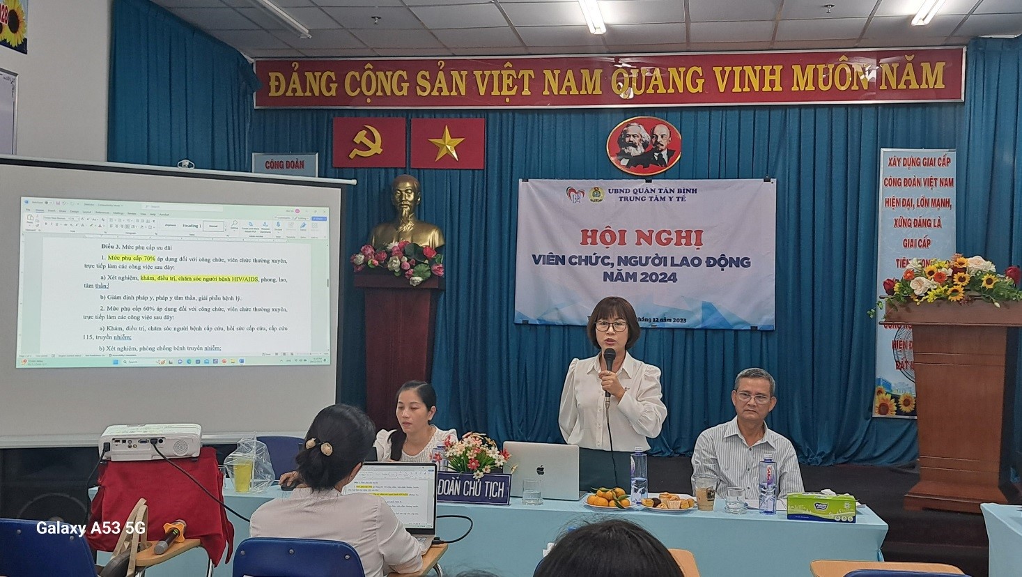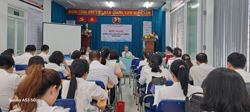 Thực hiện Công văn hướng dẫn tổ chức hội nghị cán bộ, công chức, viên chức năm 2024. Chiều ngày 29/12/2023 Trung tâm y tế quận Tân Bình đã tổ chức Hội nghị Viên chức, người lao động năm 2024. Tham dự Hội nghị có 80 đại biểu là đại biểu đại diện cho 200 viên chức, người lao động của các khoa, phòng và 15 Trạm y tế trực thuộc Trung tâm y tế.