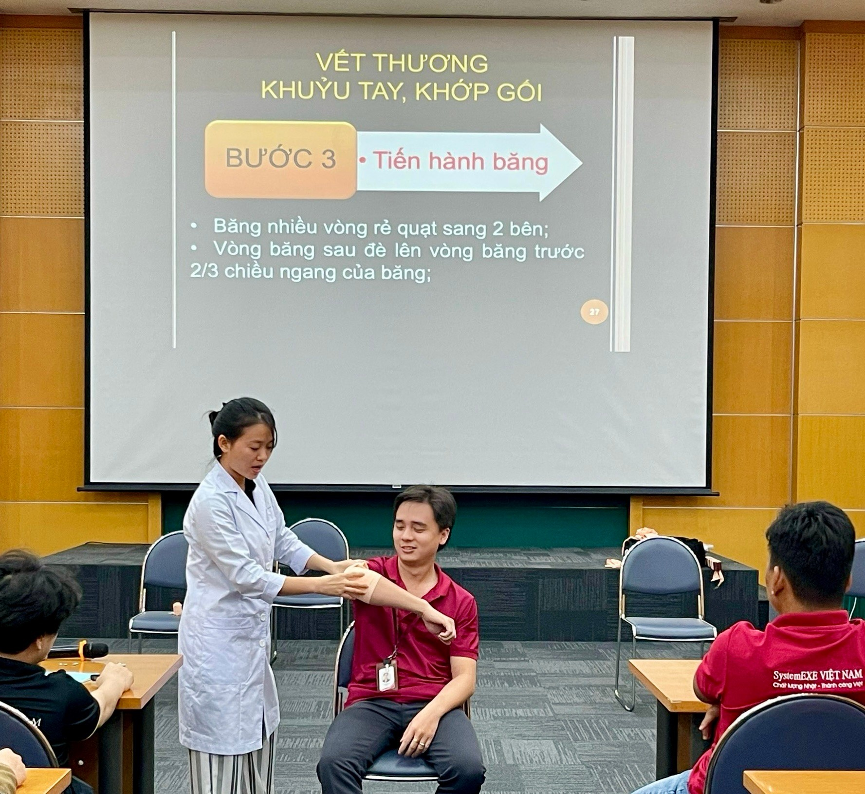 Kết thúc buổi huấn luyện sơ cứu, cấp cứu tại Công ty TNHH SystemEXE Việt Nam, 97 học viên đã hoàn thành khóa học và nắm được kiến thức, kỹ năng sơ cứu, cấp cứu, góp phần giảm thiểu hậu quả do tai nạn nghề nghiệp và đảm bảo an toàn lao động cho người lao động tại Công ty TNHH SystemEXE Việt Nam.