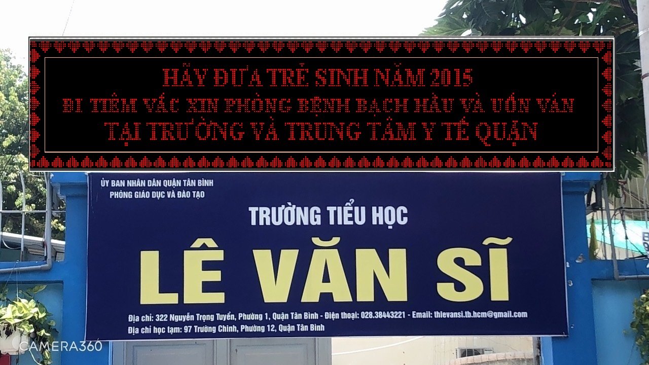 Bảng tin điện tử tuyên truyền tiêm vắc xin uốn ván, bạch hầu (Td) trước cổng trường TH Lê Văn Sĩ Phường 12