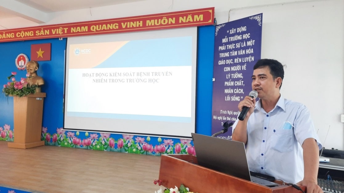 Bs. Trần Đình Khâm – Trưởng Khoa Kiểm soát bệnh tật tập huấn về tiêm vắc xin uốn ván – bạch hầu cho đội ngũ CBYT trường học