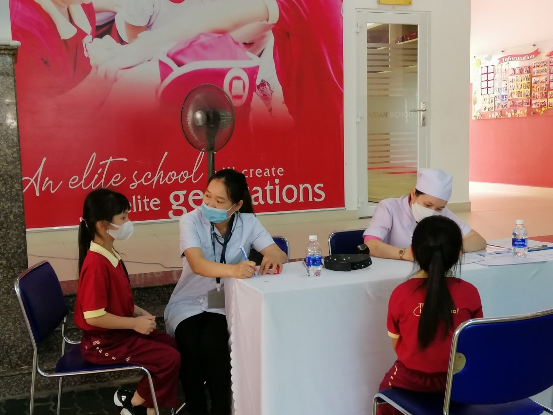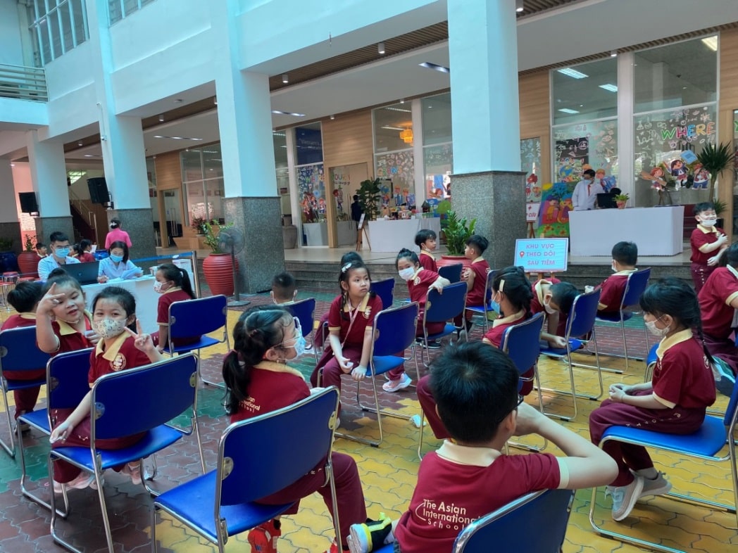 Khu vực học sinh chờ trước tiêm tại trường TH Quốc tế Á Châu