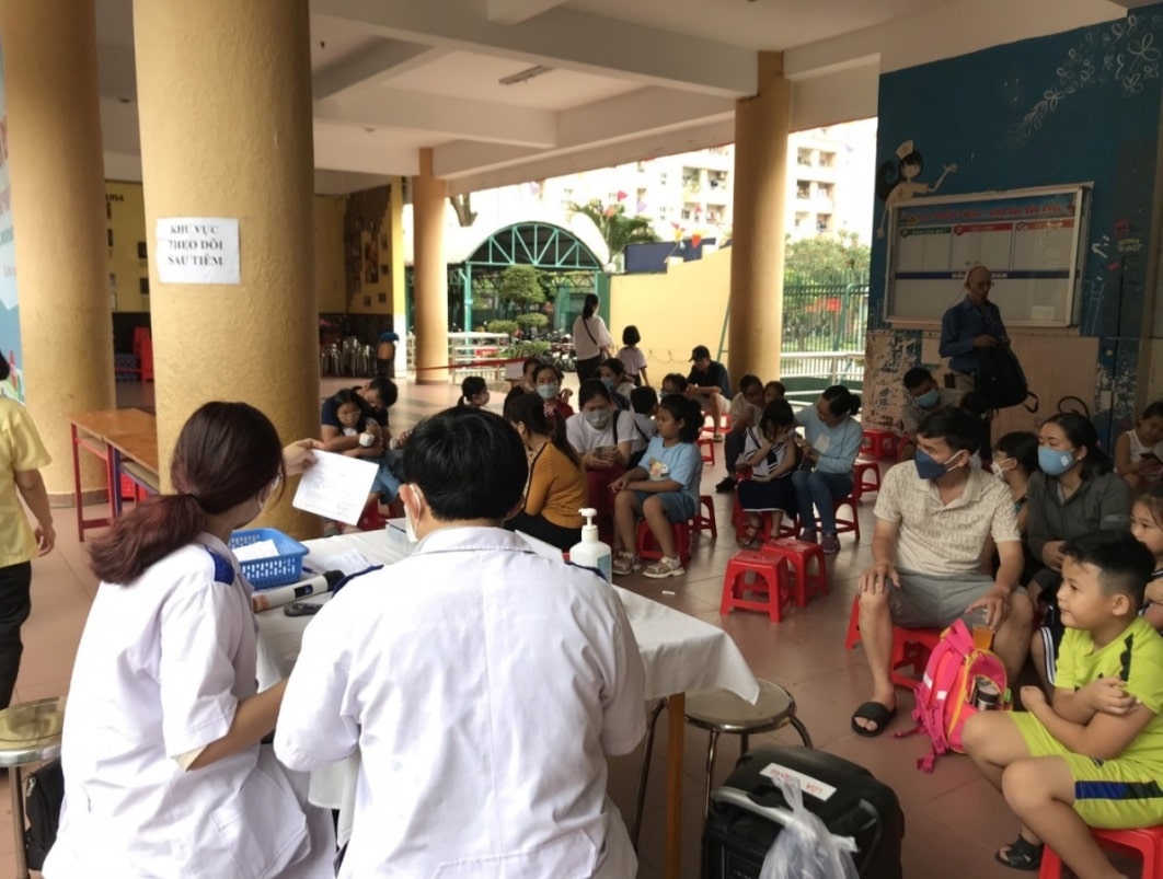 Khu vực theo dõi sau tiêm tại trường Tiểu học Lê Thị Hồng Gấm
