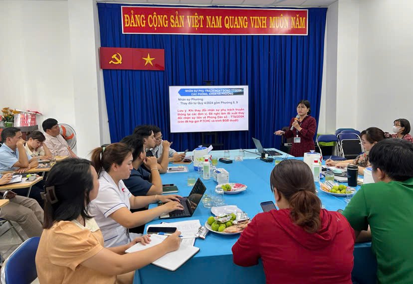 Ths Nga thông tin trong năm 2025, quận Tân Bình tiếp tục thực hiện các hoạt động tập huấn, truyền thông PCTHTL từ quỹ PCTHTL. Ths Nga mong muốn các đơn vị cùng phối hợp Phòng DS-TT&GDSK để hoàn thành chỉ tiêu liên quan đến chương trình PCTHTL do HCDC giao.