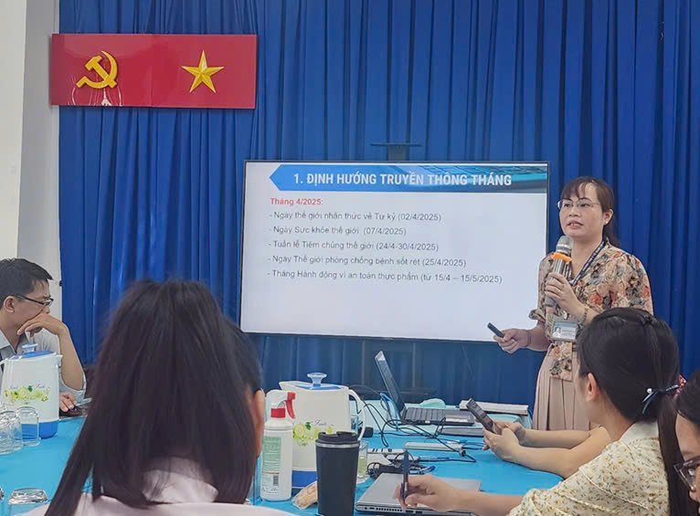 Tiếp đến, Ths Nga triển khai phương hướng hoạt động TTGDSK quý II năm 2025. Tập trung các hoạt động truyền thông trọng điểm như phòng chống dịch bệnh Sốt xuất huyết trong mùa mưa, bệnh Tay chân miệng trong trường học; Tháng hành động An toàn thực phẩm,… Bên cạnh đó, các khoa phòng và 15 Trạm y tế cần tăng cường phối hợp các ban ngành, đoàn thể và các trường học tại địa phương truyền thông lồng ghép chương trình sức khỏe, dịch bệnh ưu tiên và vấn đề sức khỏe theo định hướng hàng tháng của Trung tâm kiểm soát bệnh tật Thành phố; hướng dẫn bộ hồ sơ thanh quyết toán liên quan đến hoạt động truyền thông giáo dục sức khoẻ năn 2025. Ngoài ra, Trạm Y tế cần tăng cường like, share các hoạt động của Trung tâm qua các trang mạng xã hội như Website, Fanpage, Zalo… nhấn mạnh việc khắc phục những hạn chế trong kết quả giám sát Quý IV năm 2024 và trong quá trình thực hiện các hoạt động TTGDSK đang diễn ra trong quý I năm 2025 về hoạt động TTGDSK và PCTHTL tại các đơn vị và song song đó 15 TYT phường chuẩn bị hồ sơ cho Bộ Tiêu chí Quốc gia phường xã năm 2024 để phục vụ cho công tác kiểm tra của Sở Y tế trong thời gian tới.