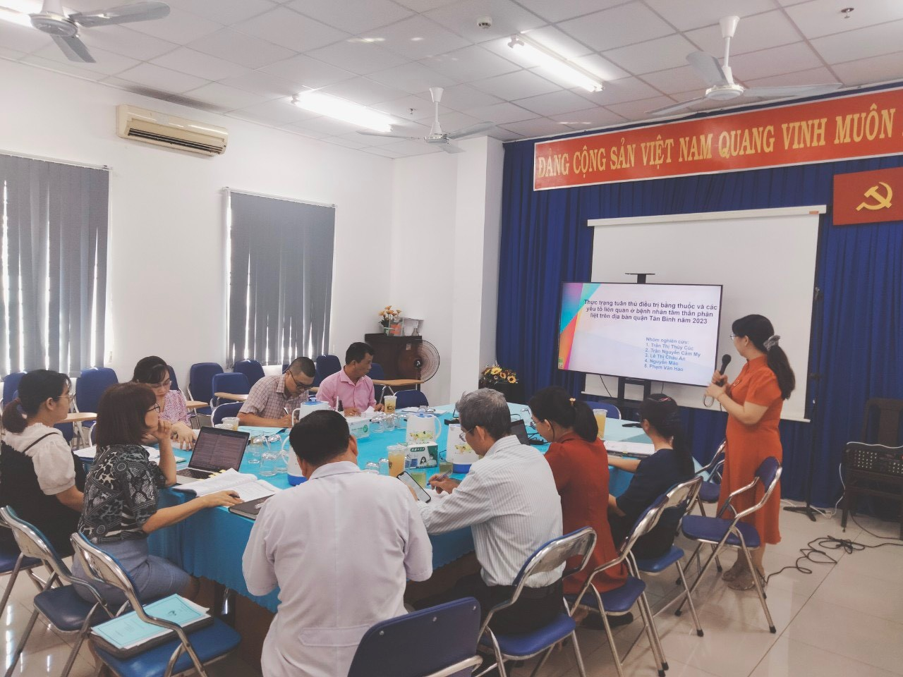 Tại hội nghị, Hội đồng nghiên cứu khoa học Trung tâm Y tế đã nghe 02 nhóm nghiên cứu trình bày nội dung các đề tài nghiên cứu gồm:“Tỉ lệ rối loạn trầm cảm và một số yếu tố liên quan ở người từ 18 đến dưới 60 tại quận Tân Bình năm 2023” do Bác sĩ CKII. Nguyễn Thanh Trang làm chủ nhiệm đề tài (nhóm nghiên cứu 1) và “Tỉ lệ tuân thủ điều trị bằng thuốc và các yếu tố liên quan của bệnh nhân tâm thần phân liệt đang điều trị ngoại trú tại Trung tâm Y tế quân Tân Bình năm 2023” do Ths.Trần Thị Thủy Cúc làm chủ nhiệm đề tài (nhóm nghiên cứu 2).