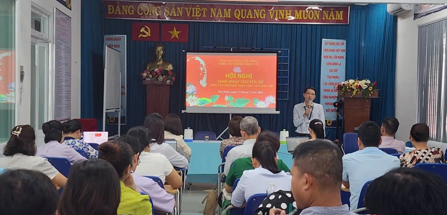 Tại hội nghị này, Đảng ủy đã tổ chức đợt sinh hoạt chuyên đề về bài báo “Dân vận” của Chủ tịch Hồ Chí Minh. Hội nghị ngoài ôn lại nội bài báo “Dân vận”, Đảng ủy Trung tâm Y tế mong muốn các đảng viên, viên chức, người lao động của Trung tâm đều thực hiện tốt công tác vận động quần chúng và phải thấm nhuần nội dung “…..Tôn trọng, tin tưởng, gần gũi và gắn bó mật thiết với Nhân dân. Quan tâm chăm lo đời sống vật chất, tinh thần của Nhân dân; bảo vệ quyền, lợi ích chính đáng, hợp pháp của Nhân dân; tạo điều kiện để Nhân dân phát huy quyền làm chủ, dựa vào Nhân dân để xây dựng Đảng và hệ thống chính trị trong sạch, vững mạnh. Việc gì có lợi cho dân phải hết sức làm, việc gì có hại đến dân phải hết sức tránh”, gắn với thực hiện nhiệm vụ chính trị của đơn vị là vận động nhân dân tích cực tham gia phòng, chống dịch bệnh, bảo vệ sức khỏe bản thân và cộng đồng.