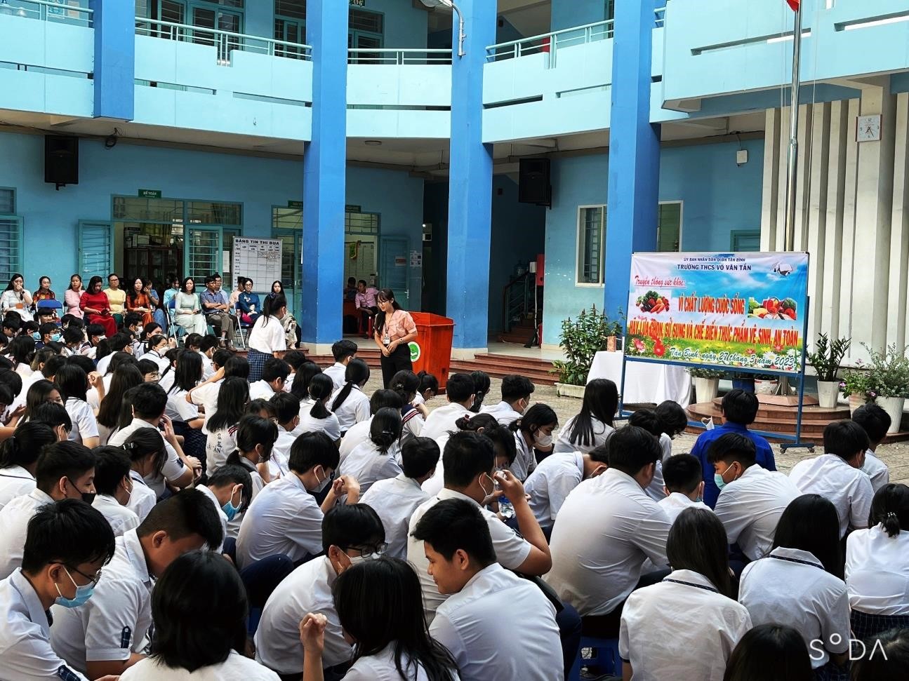 Nhằm tăng cường công tác đảm bảo an toàn thực phẩm và phòng, chống ngộ độc thực phẩm tại trường học theo chỉ đạo tại Công văn số 468/UBND-VX ngày 15/3/2023 của UBND quận Tân Bình, vào lúc 7 giờ, ngày 27/3/2023, Trung tâm Y tế quận Tân Bình đã phối hợp Trường THCS Võ Văn Tần phường 11 thực hiện 02 buổi truyền thông về hướng dẫn đảm bảo an toàn thực phẩm và phòng, chống ngộ độc thực phẩm cho Ban Giám hiệu, giáo viên và hơn 500 em học sinh của nhà trường.