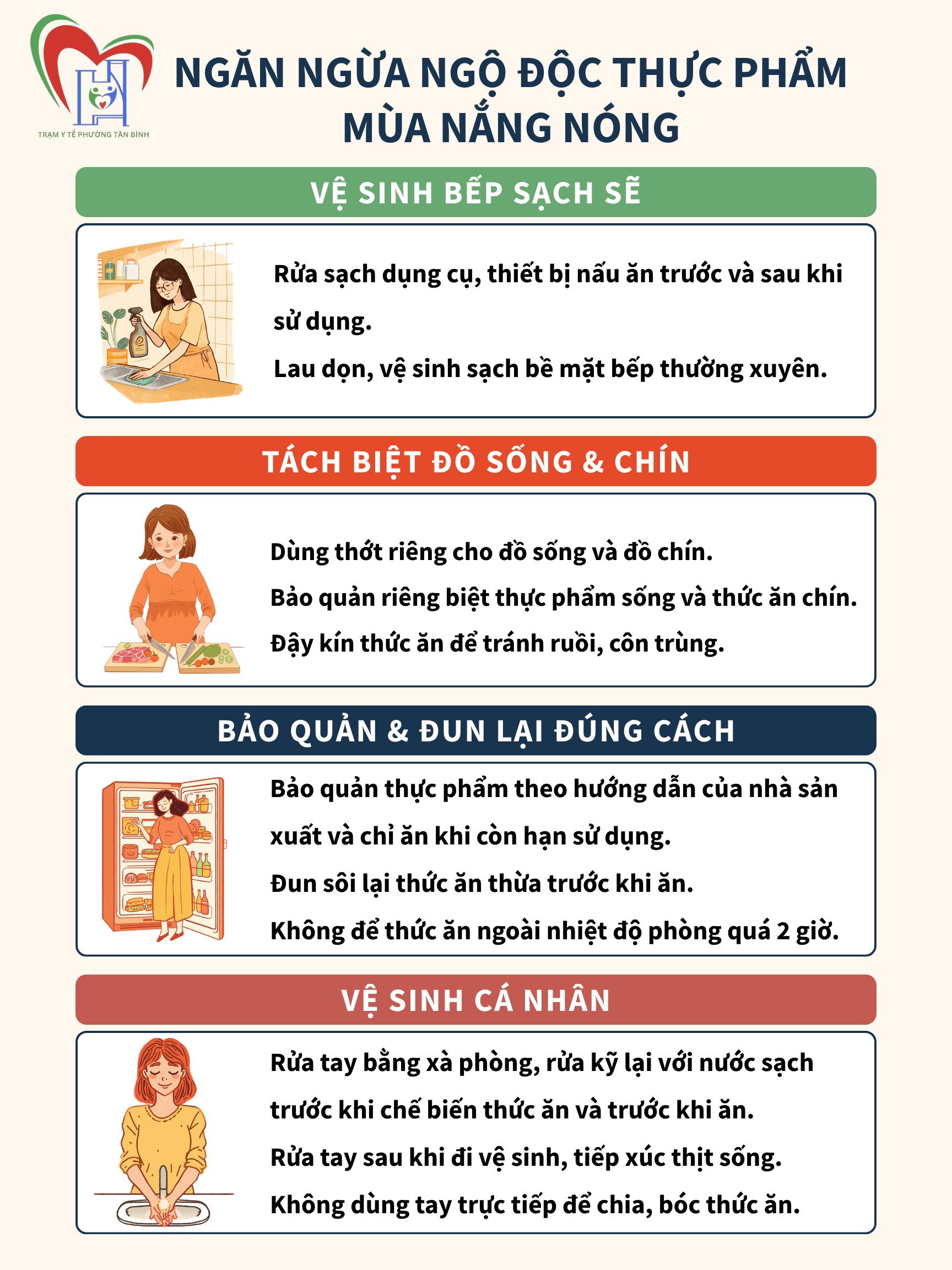 Ngộ độc thực phẩm không chỉ ảnh hưởng đến sức khỏe mà còn có thể gây hậu quả nghiêm trọng nếu không được xử lý kịp thời. Vì vậy, mỗi người dân hãy chủ động thực hiện các biện pháp đảm bảo an toàn thực phẩm, đặc biệt trong mùa nắng nóng, nhằm bảo vệ sức khỏe cho bản thân, gia đình và cộng đồng.