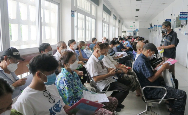 Nhiều người chờ đến lượt khám bệnh do ảnh hưởng của thời tiết nắng nóng. Ảnh: TTXVN