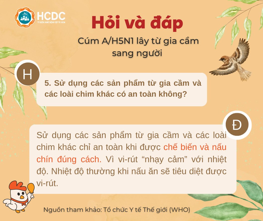 5. Sử dụng các sản phẩm từ gia cầm và các loài chim khác có an toàn không?