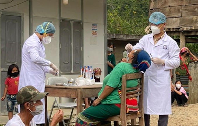 Cán bộ y tế ở huyện Kỳ Sơn lấy mẫu đối với những người liên quan đến ca bệnh. Ảnh: Hùng Lê