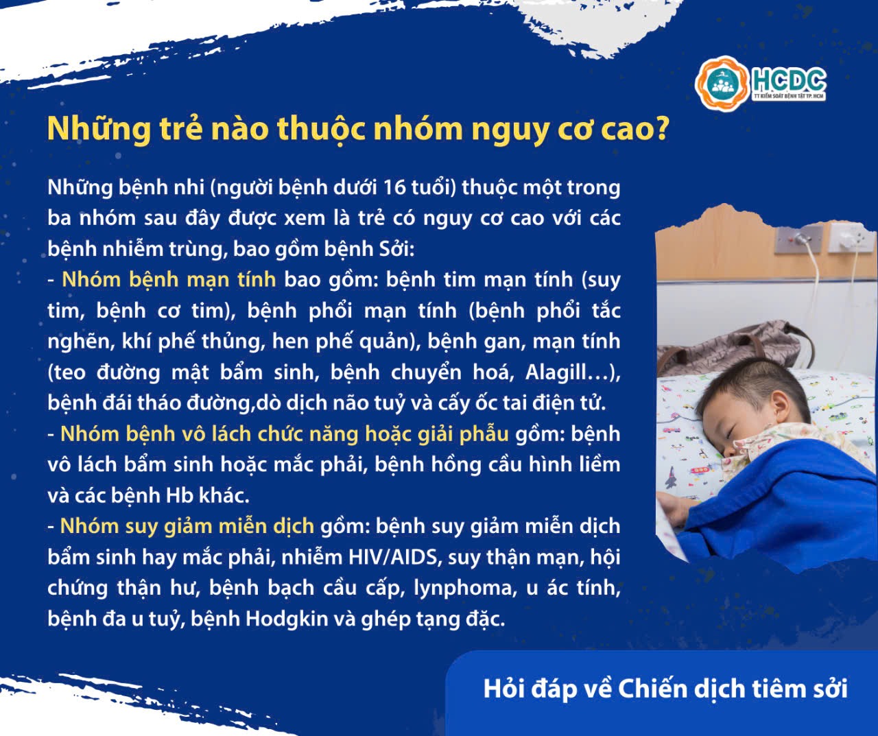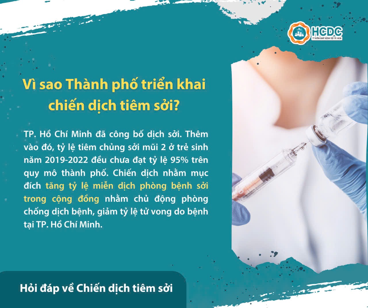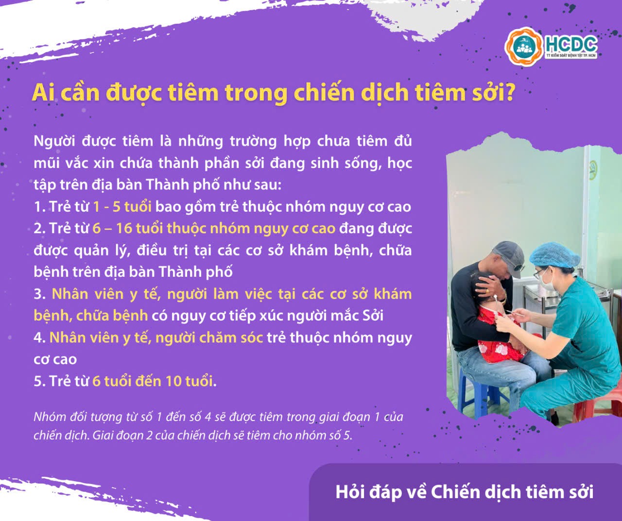 TP. Hồ Chí Minh đang triển khai chiến dịch tiêm vắc xin sởi từ ngày 31/8/2024 với mục đích nâng cao miễn dịch cộng đồng, ngăn chặn dịch sởi.