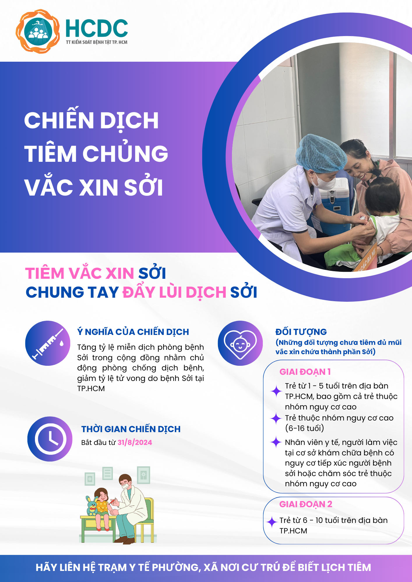 Tiêm vắc xin sởi giúp chủ động phòng chống dịch bệnh, tăng tỷ lệ miễn dịch phòng bệnh sởi trong cộng đồng, giảm tỷ lệ tử vong do bệnh sởi tại Thành phố Hồ Chí Minh.