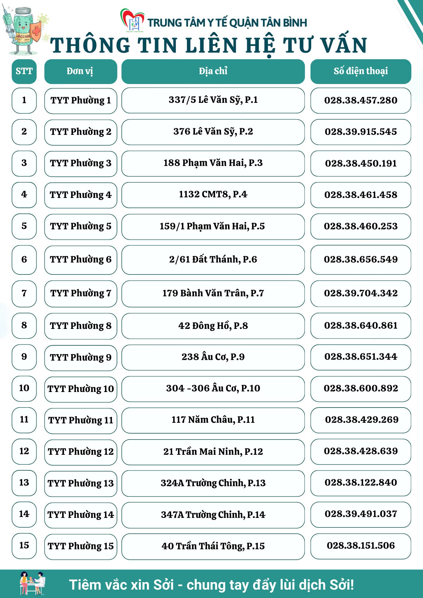 Vắc xin sởi: Tiêm bổ sung cho trẻ từ 6 tháng đến dưới 9 tháng tuổi là an toàn và cần thiết - Thông tin các điểm tư vấn về tiêm chủng Sởi tại quận Tân Bình