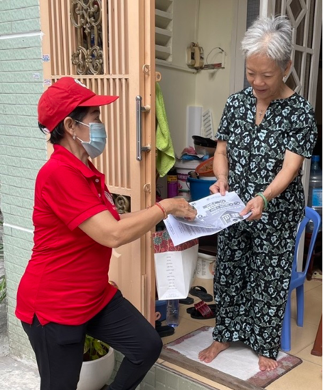 Phát tờ rơi tuyên truyền đến các hộ dân trên địa bàn