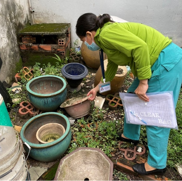 Nhân viên Y tế kiểm tra các điểm có nguy cơ phát sinh lăng quăng, muỗi