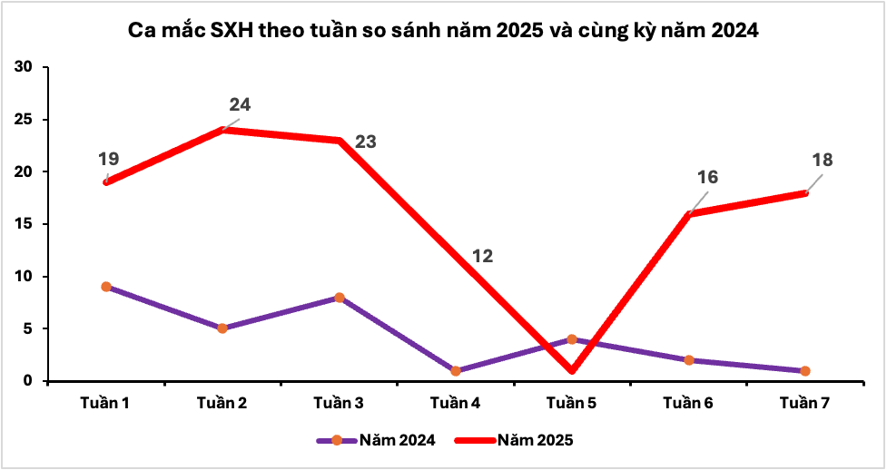 Trong 7 tuần đầu năm 2025 (đến hết ngày 16/02/2025), trên địa bàn quận Tân Bình đã ghi nhận 113 ca bệnh sốt xuất huyết, tăng 276,67% so với cùng kỳ năm 2024 (7 tuần đầu năm 2024 chỉ ghi nhận 30 ca bệnh).