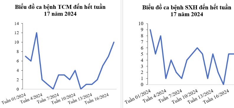 Biểu đồ ca mắc SXH và TCM theo tuần