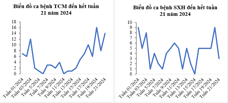 Trong tuần 21, ghi nhận 3 ca mắc sốt xuất huyết, giảm 50% so với trung bình 4 tuần trước (6 ca). Ca bệnh xuất hiện trên địa bàn Phường 10, Phường 11 và Phường 14