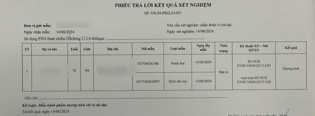 Kết quả xét nghiệm của bệnh nhân dương tính với virus dại. Ảnh: BVCC