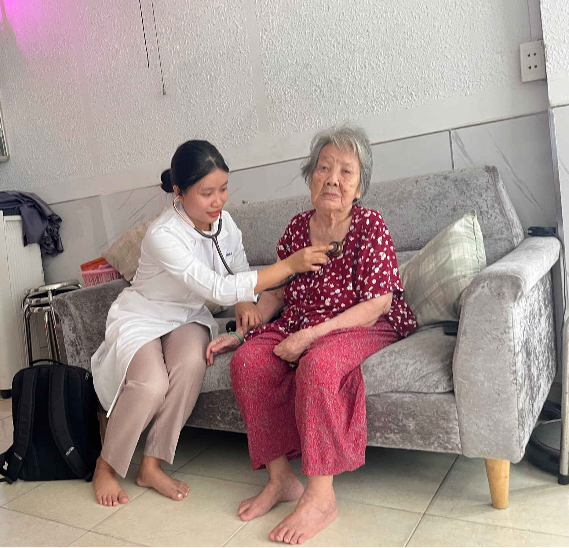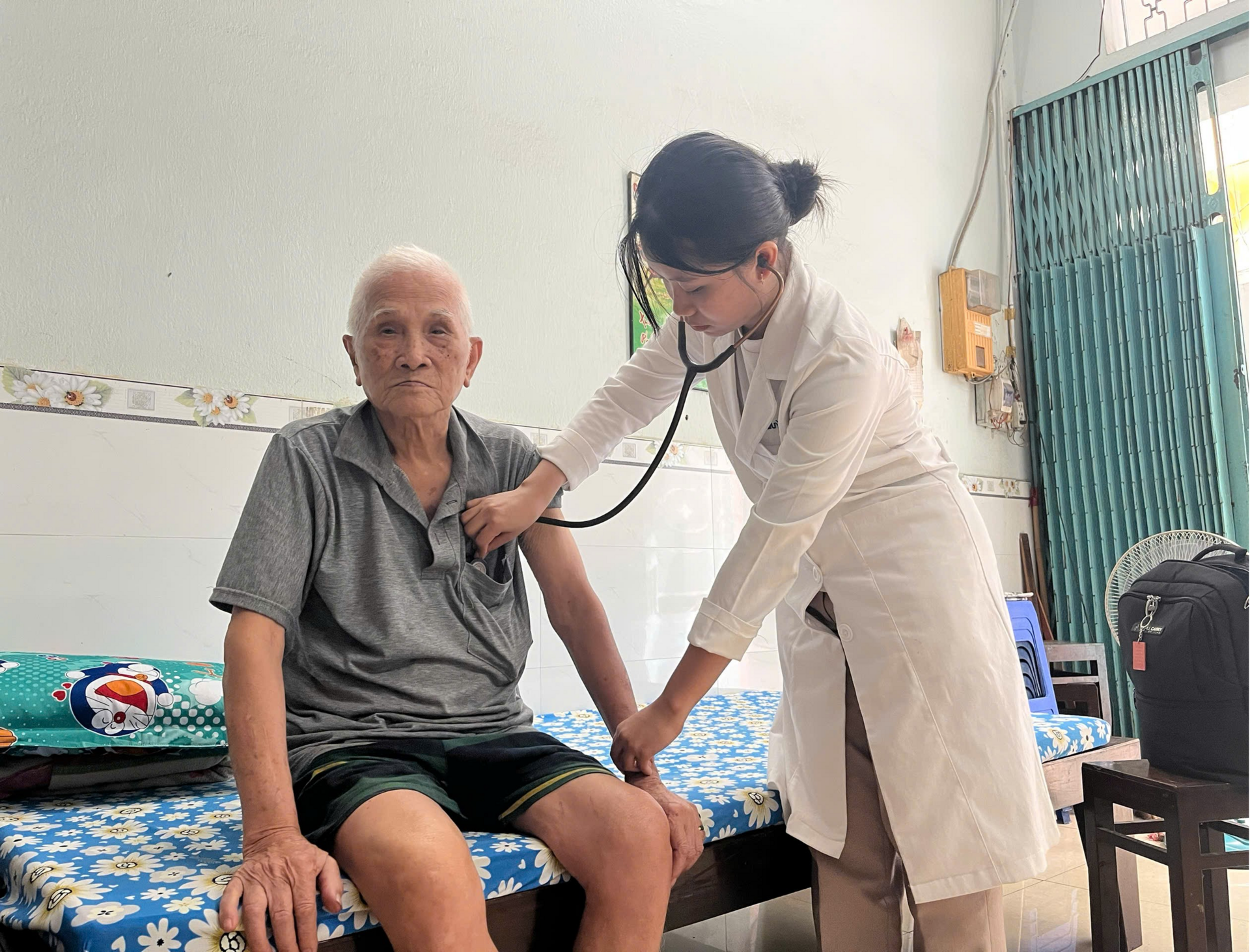 Bác sĩ Trạm Y tế phường 9 (cũ) thuộc phường Tân Hoà thăm khám NCT tại nhà