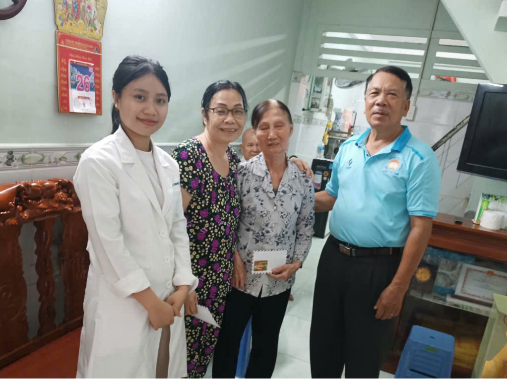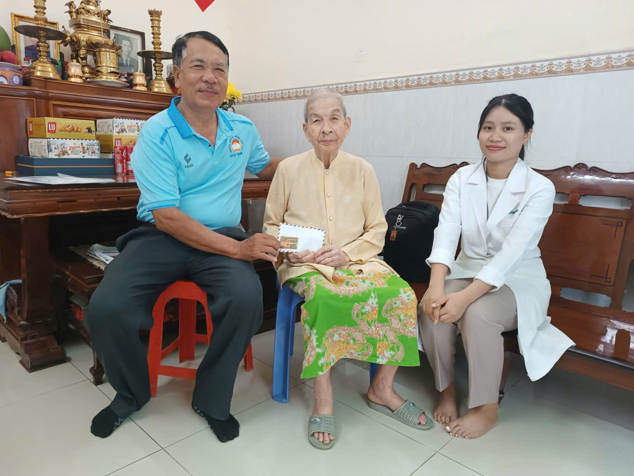 Đại diện hội NCT và Trạm Y tế phường Tân Hoà thăm khám cho người cao tuổi tại nhà