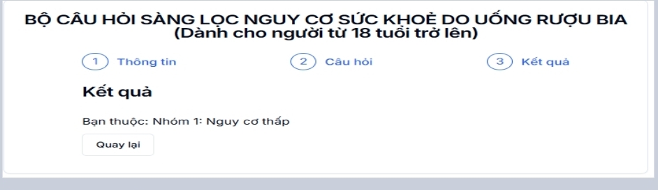 Ảnh: Kết quả sàng lọc nguy cơ sức khoẻ do uống rượu bia