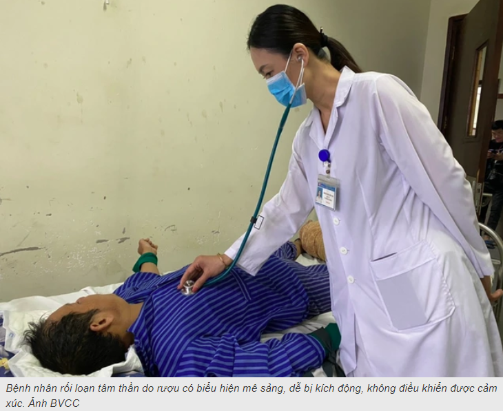 Theo bác sĩ Trịnh Thị Việt Hà, Phó Trưởng khoa Tâm thần – Thần kinh BVĐK cho biết, "Thời gian gần đây, mỗi ngày khoa tiếp nhận từ 1-2 bệnh nhân nhập viện điều trị do mắc các rối loạn tâm thần có liên quan đến rượu. Hầu hết bệnh nhân vào viện trong tình trạng nặng, có nhiều bệnh lý kèm theo như viêm gan, xơ gan, tim mạch, dạ dày...