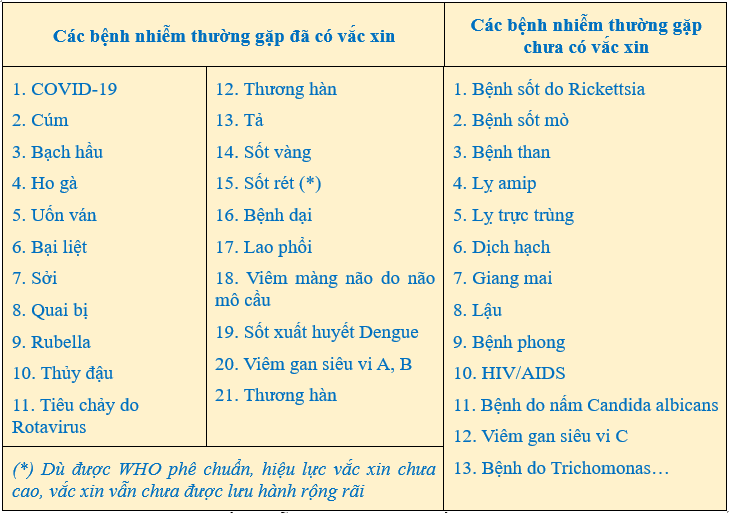 Các bệnh truyền nhiễm đã có/chưa có vắc xin phòng ngừa [1]