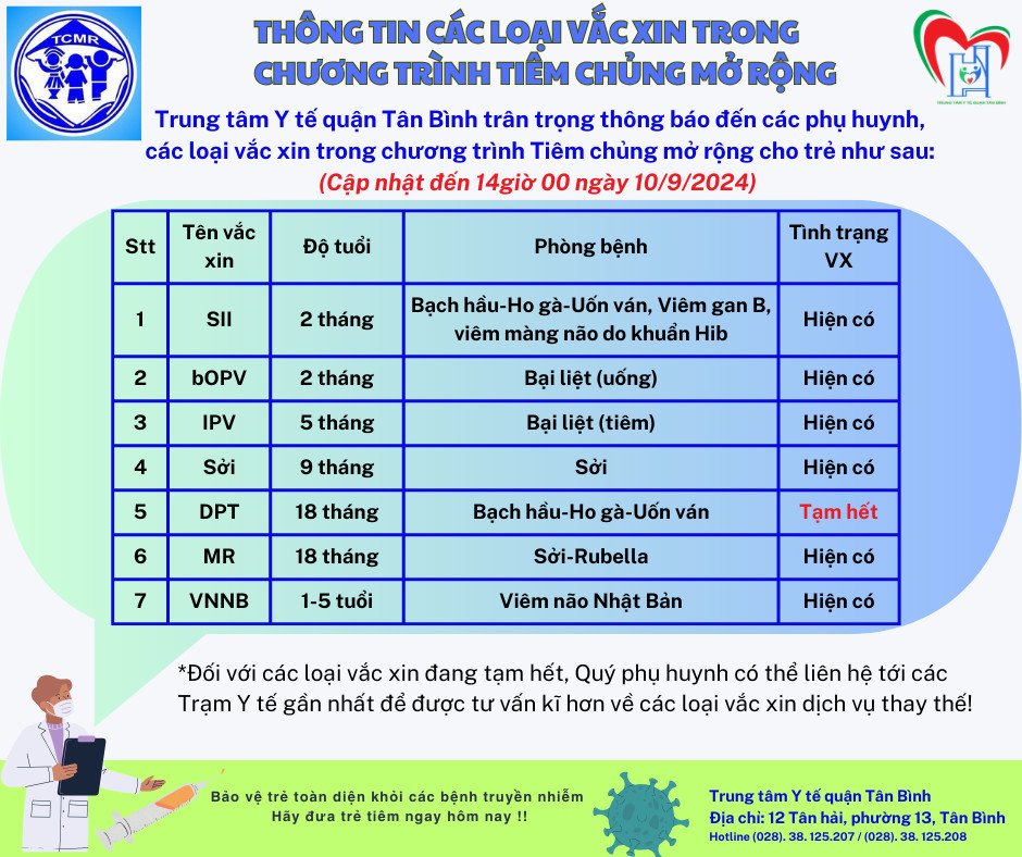 Thông tin các loại vắc-xin trong chương trình tiêm chủng mở rộng (cập nhật 10/9/2024)