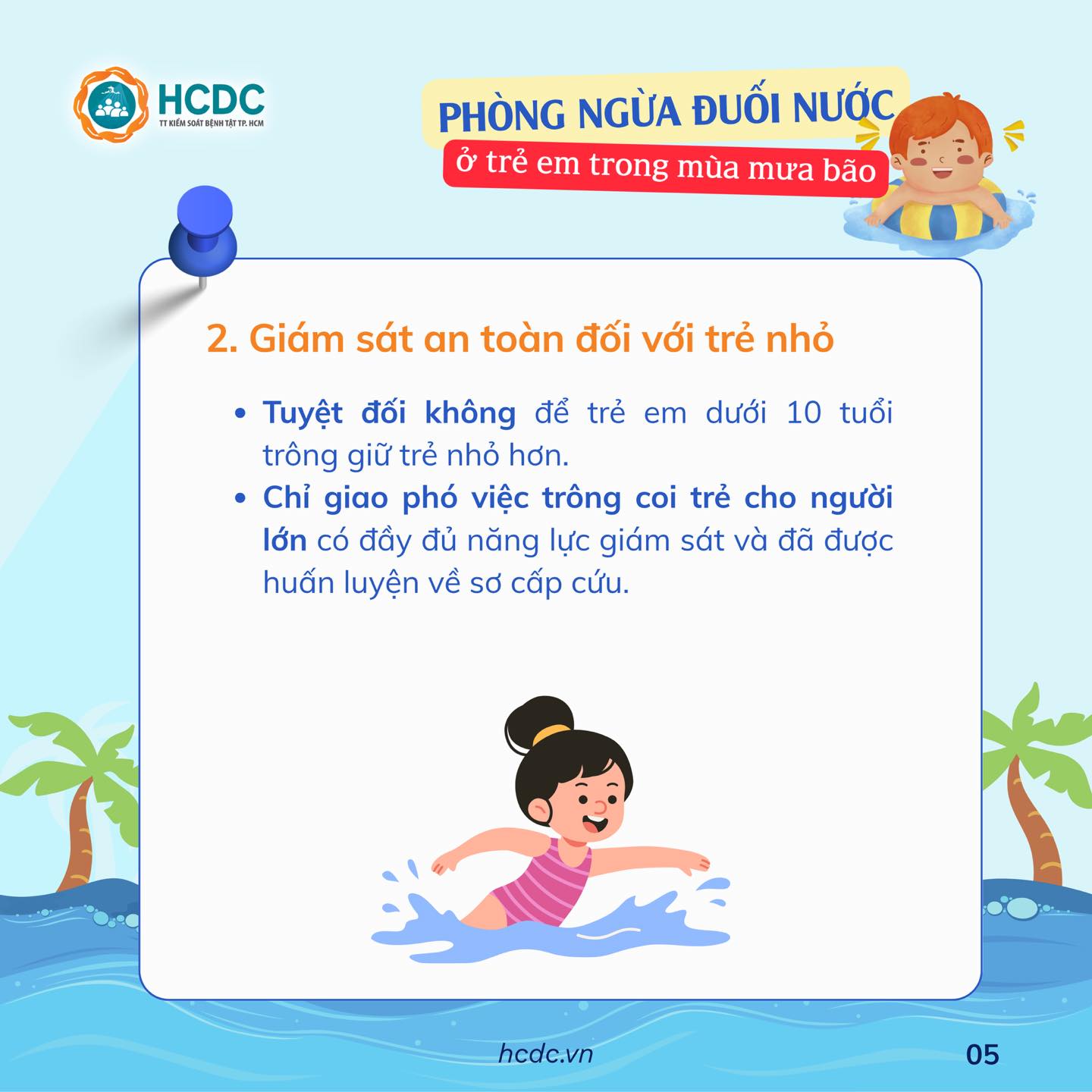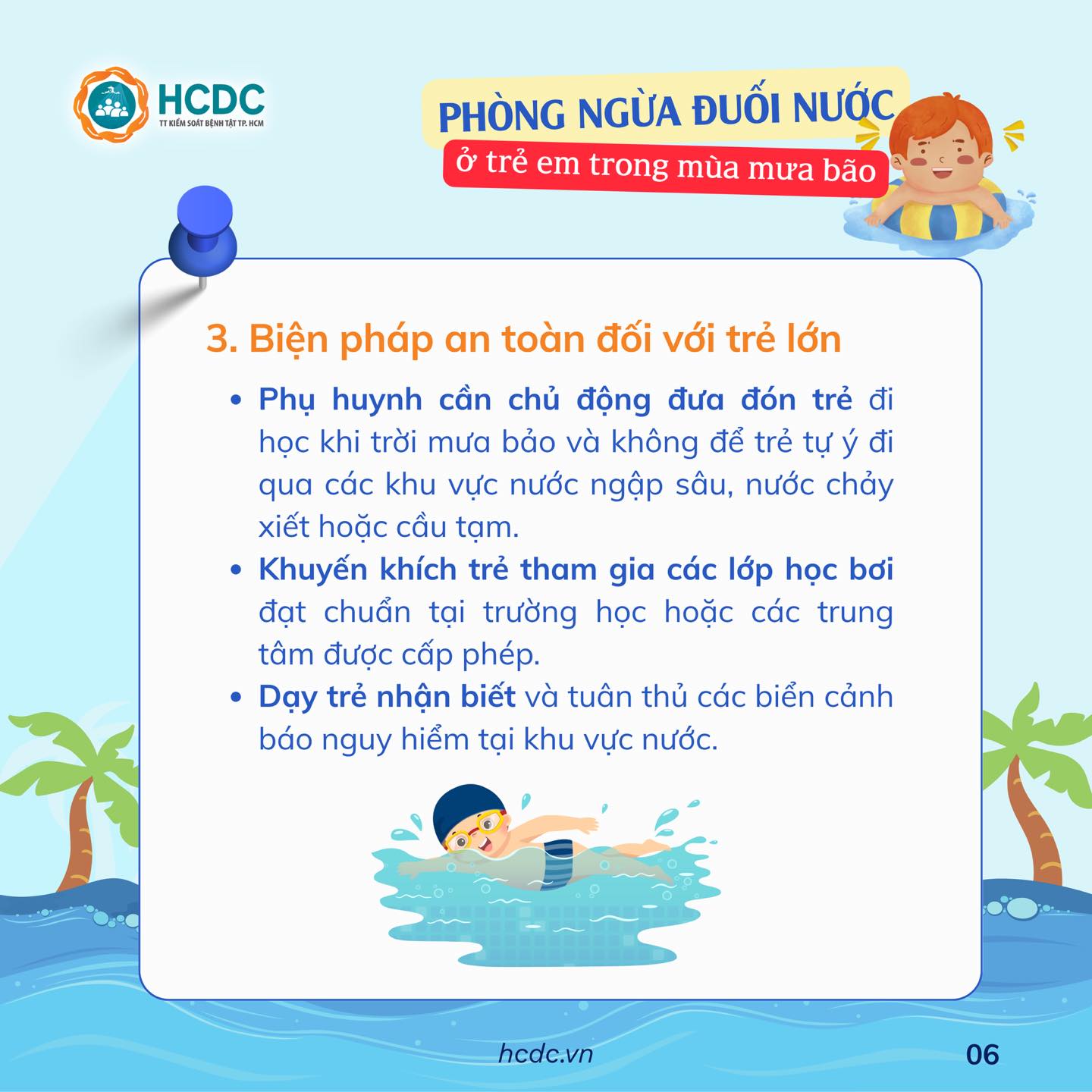 Mưa bão làm gia tăng các khu vực chứa nước (vũng nước đọng, rãnh nước chảy xiết, hố ga bị ngập...), từ đó làm tăng nguy cơ tai nạn đuối nước ở trẻ em.